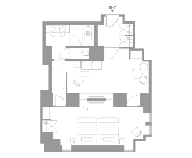 Experience a one-of-a-kind suite where the rich history of Yasaka Kaikan is seamlessly woven into modern sophistication and luxury. A spacious living area and thoughtfully curated contemporary design, in harmony with tradition, offer supreme comfort and an unforgettable stay.