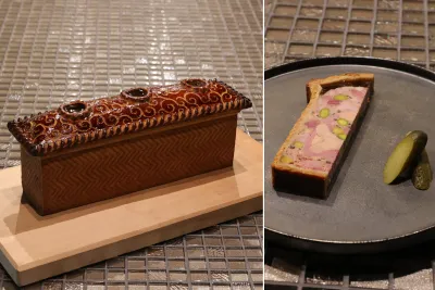 Discover the artistry of the World Champion. This signature duck pâté-croûte is a testament to culinary precision, featuring beautiful exterior patterns and a perfectly seamless interior of rich pâté and clarified consommé jelly. We hope you enjoy this masterful balance of technical perfection and profound flavor.
