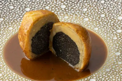 Our "Vegan Omakase Course" features a specially crafted plant-based version of Chef Voisin’s signature Black Truffle Pie, served alongside a curated selection of the finest seasonal ingredients. This menu is designed not only for those seeking an exquisite vegan fine-dining experience but also as a sophisticated choice for business entertaining. Enjoy a moment of true culinary indulgence that transcends dietary preferences.