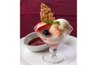 Enjoy an exquisite selection of sweets featuring an abundance of seasonal strawberries, alongside savory dishes crafted with the finest flavors of spring.