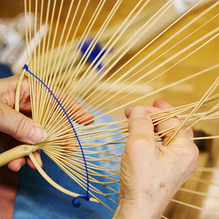 The Boshu Uchiwa is one of Japan’s three most renowned traditional fans, crafted through a meticulous 21-step process using a single slender piece of bamboo known as medake. Lightweight yet durable, its wide surface produces a soft and graceful breeze.