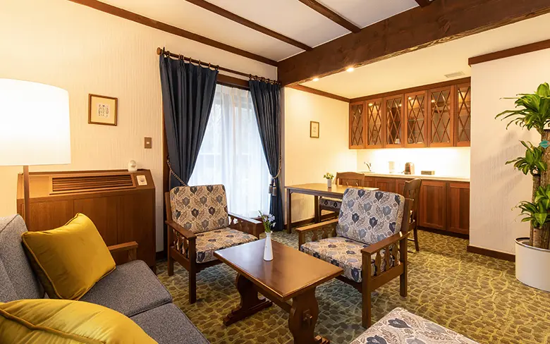ベッドルームとリビングルームを備えたスイートです。専用ベランダ付の贅沢な空間をお楽しみください。