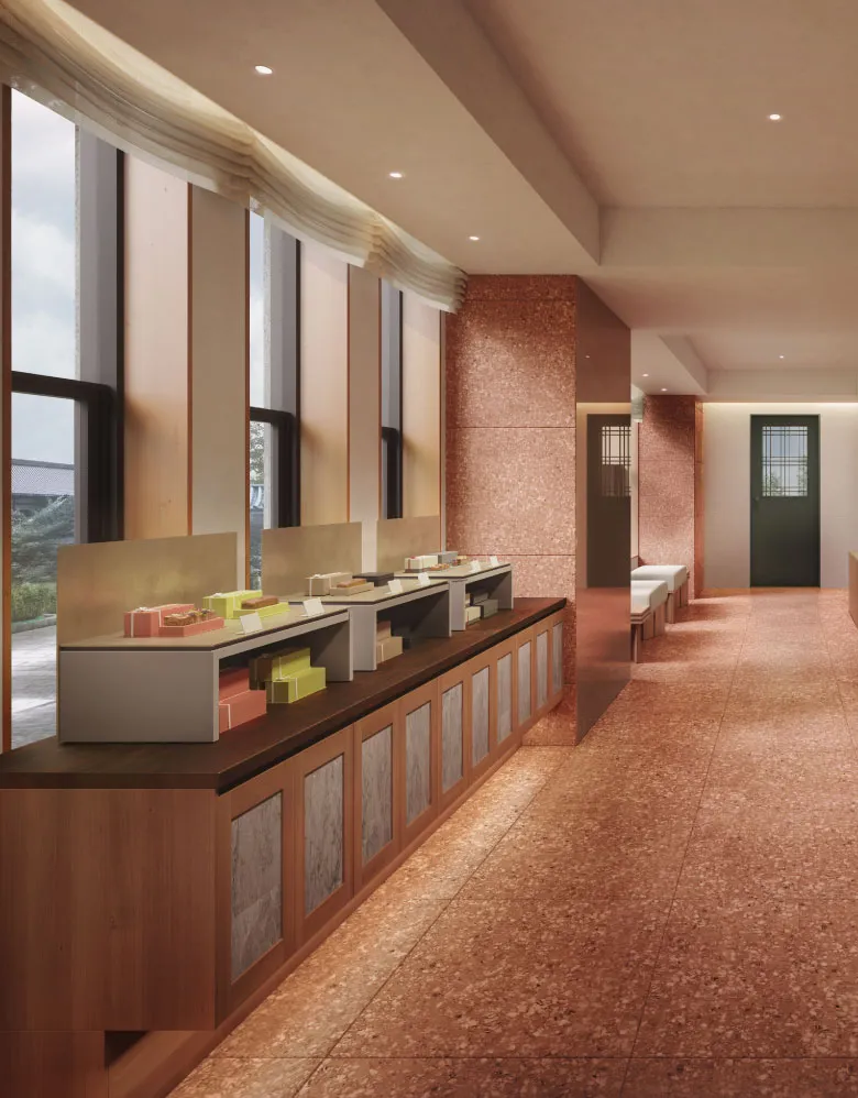弥栄会館から引き継いだ建物の特徴・意匠を残した店舗では、様々なお客様に帝国ホテル 京都を感じていただける選りすぐりの商品を、季節に合わせてご用意いたします。