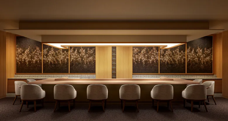 料理人とお客様が向き合うカウンターは所作・温度・香りが間近に迫る一期一会の舞台。
