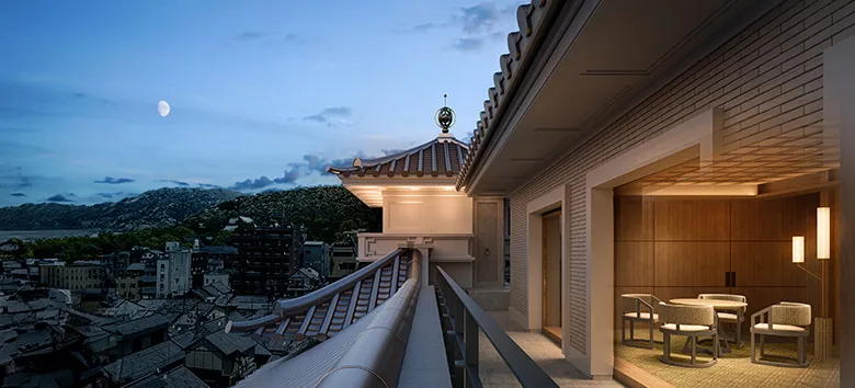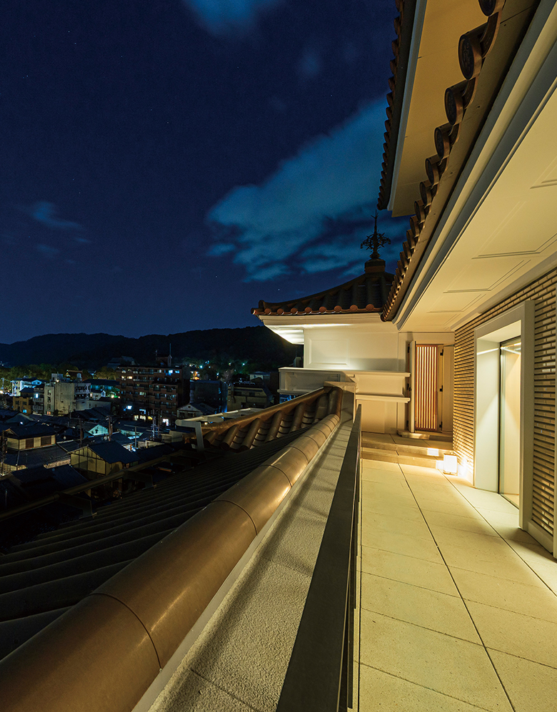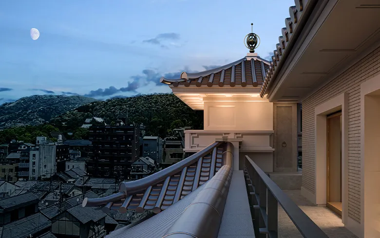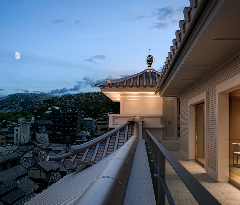 弥栄会館のレガシーを継承し、京都の街並みや山々を望む唯一無二の空間です。