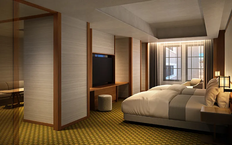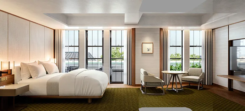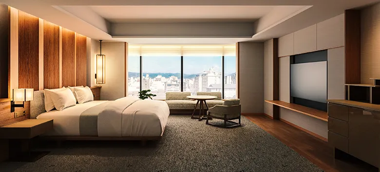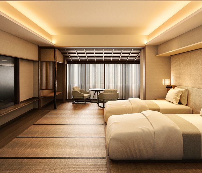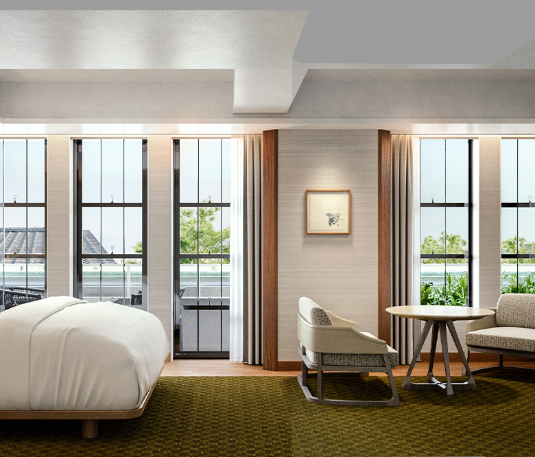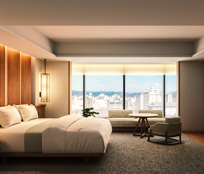 こだわりの自然素材で設えた客室と、帝国ホテル 京都のおもてなしが織りなす寛ぎのひとときをご堪能いただけます。