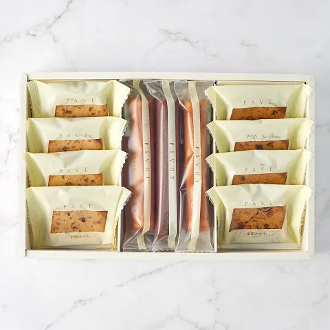 素材の風味を生かした3種類のスティック型ケーキと、スライスしたフルーツケーキ・ペカンナッツケーキの詰め合わせです。