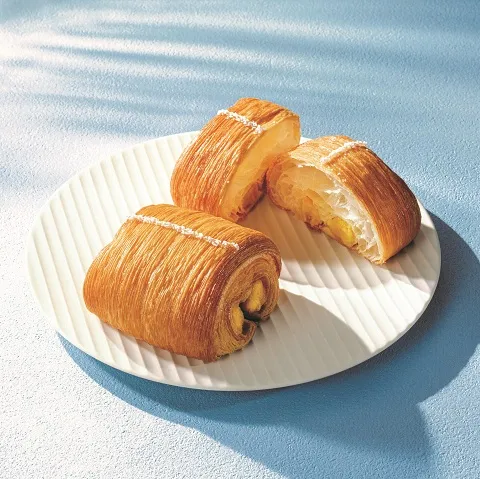4種のフルーツ(マンゴー、パッションフルーツ、レモン、 バナナ)を使用したパバナピューレとカスタードクリーム、 アーモンドクリームをあわせて巻き込んだ、フルーツの 甘酸っぱさをお楽しみいただけるクロワッサンです。 ハレクラニのオリジナルレシピをアレンジしてご用意します。