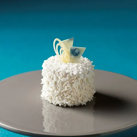 フェア初開催の2009年以来、不動の人気を誇るハレクラニのオリジナルレシピのケーキ。ふんわりとしたシフォン生地に カスタードクリームとラズベリーソースを絞り、表面に ココナッツロングをまぶしました。