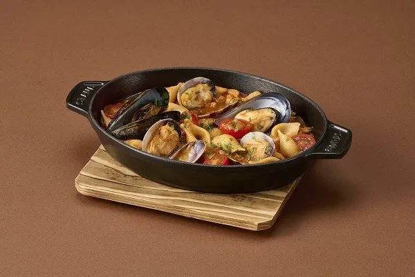 ムール貝やアサリなどの魚介類をじっくりと煮込みスパイスを効かせたトマトソースと合わせました。魚介の旨味とスパイスの香りが食欲をそそるパスタです。