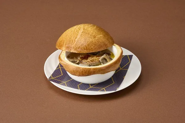 香り豊かなキノコとフォアグラ、鶏肉をクリームソースでやさしく煮込みバター香るブリオッシュ生地で包み焼き上げました。様々な具材の芳醇な香りと味をお楽しみください。