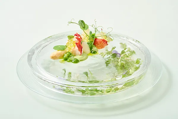 香り豊かなハーブを贅沢に使い、旨みあふれるオマール海老と上品な甘みのホワイトアスパラガスを合わせました。爽やかさと華やかさを一皿でお楽しみください。