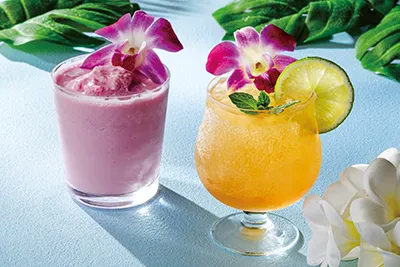 毎年人気のハレクラニフェア定番のカクテルや、トロピカルな味わいの新作のカクテルの計3種類のドリンクをご用意します。