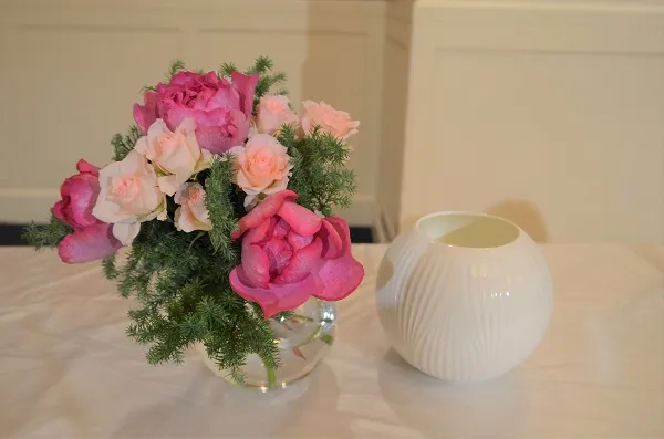 ローズマリーが香る爽やかなゼリーにベルローズの花びらを飾りました。