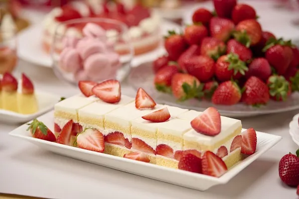 毎年人気の「フレッシュブランド苺3種食べ比べ」のほか、昨年初登場しご好評いただいたミニパフェコーナーをご用意します。パフェ用にご用意するトッピングだけでなく、スイーツやフレッシュの苺などを組み合わせて自由にお作りいただけます。また、28種類のスイーツの他にサラダやパスタ、サンドイッチなどの軽食もあり、お好きなものを心ゆくまでお楽しみいただけます。