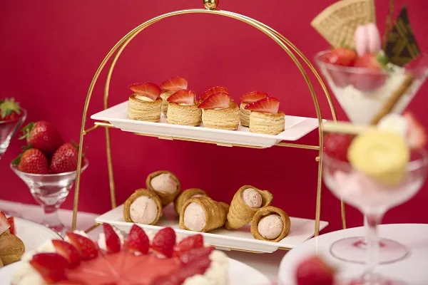 定番のショートケーキのほか、苺と相性の良いチョコレートを合わせた「チョコレートと苺ガナッシュのプティフール」や、レモンのコンフィチュールが爽やかな「レモンと苺のコロネ」などをお召し上がりいただけるアフタヌーンティーです。