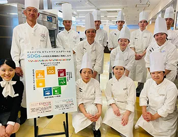帝国ホテルは「おいしく社会を変える」という考えのもと、「食品ロス削減」に力を入れています。調理時に食材を無駄なく使用する工夫、アップサイクル商品の開発やオーダーバイキングの導入など、各部門で取り組みを進めています。