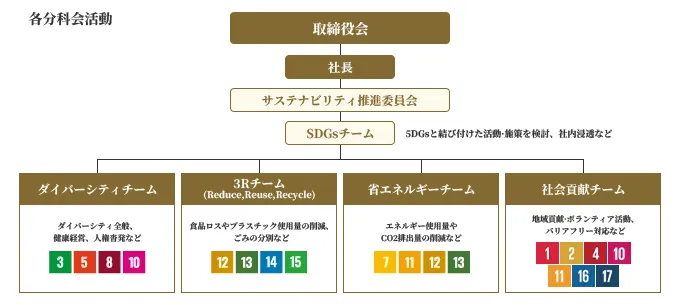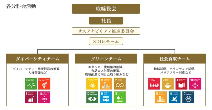 サステナビリティ推進活動において基本となるコンプライアンスについては、社長を委員長とする「リスク管理委員会」などを設け、組織的な取り組みを行っております。