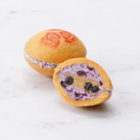 サブレ生地でシナモン風味のしっとりとしたスポンジとブルーベリー入りのバタークリームを挟みました。