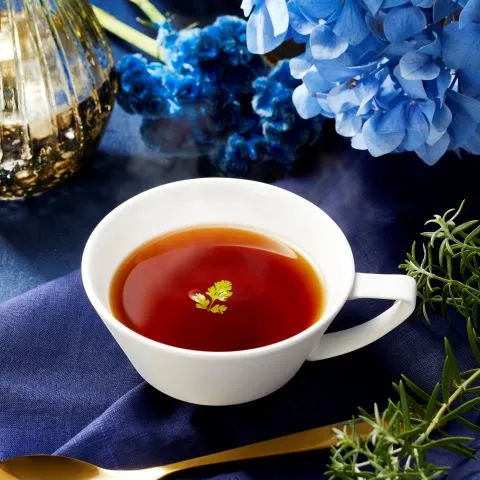 牛肉と香味野菜をじっくり煮込んで旨みを引き出した、琥珀色に澄んだ色合いのコンソメスープです。