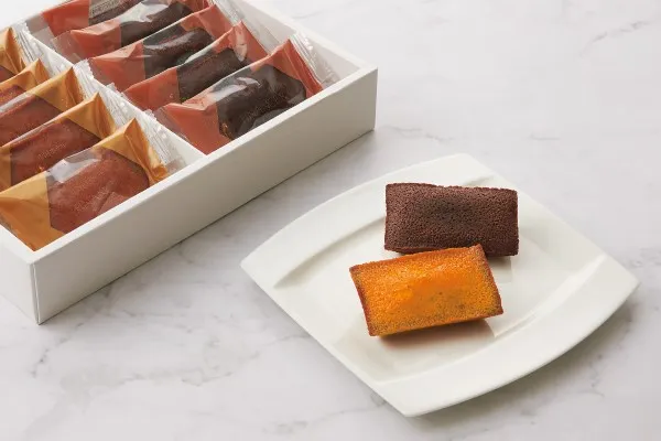 しっとりした生地にバターの風味が広がるフィナンシェは、フランスの伝統的な焼き菓子です。帝国ホテルのフィナンシェは、上質なバターとアーモンドパウダーの風味を生かした正統派スタイル。「ヘーゼルナッツ」「チョコレート」の2種のフレーバーの詰め合わせをご用意しています。