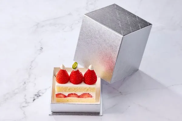 ケーキ1個用としてご用意した、華やかなシルバーのギフト箱は、ケーキをより素敵に演出します。大切な方への贈り物や特別な日のお祝いに、また日々頑張る自分へのご褒美にもおすすめです。