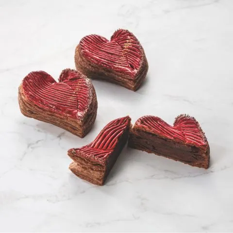 ハート型のパイの中に、とろける食感のチョコレートクリームと濃厚なガナッシュを重ねて焼き上げました。