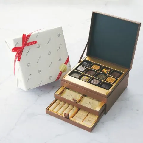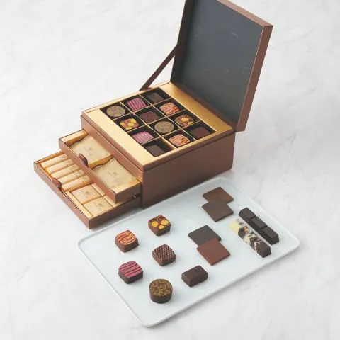 2段式の箱にチョコレートが詰まった特別な一品です。