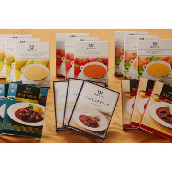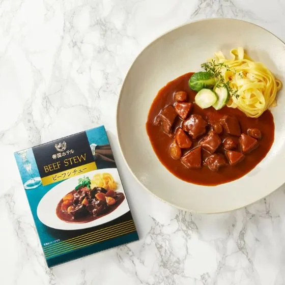 帝国ホテル伝統の「ビーフカレー」や「ビーフシチュー」は、柔らかく煮込んだ国産牛肉入りで食べごたえ抜群です。スープは温めても冷やしても美味しくお召し上がりいただけます。