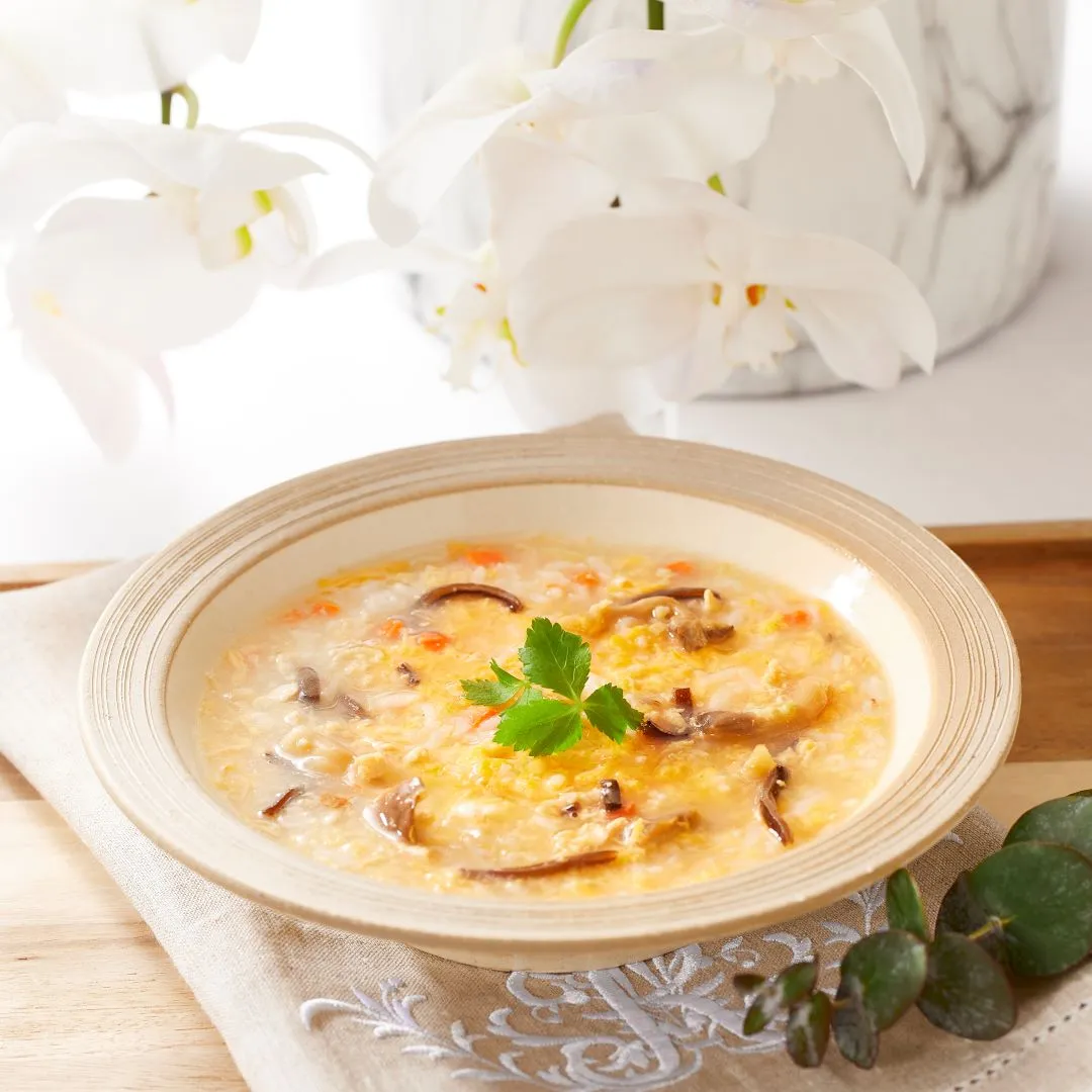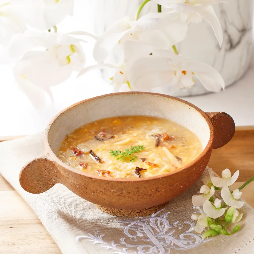 帝国ホテル 大阪のレストラン中国料理「ジャスミンガーデン」が監修した「ふかひれ雑炊スープ」、「かに雑炊スープ」、「鶏そぼろ雑炊スープ」の3種類を詰め合わせた福袋です。3箱セットと5箱セットをご用意しております。