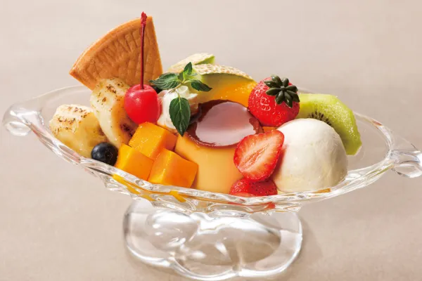 帝国ホテル人気のプリンに、季節のフルーツを贅沢にあしらいました。