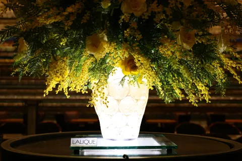 「LALIQUE(ラリック)」フラワーベース×黄色いフラワーアレンジメント