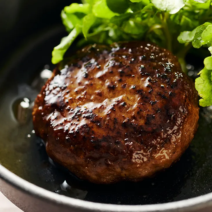 当時の帝国ホテルのシェフ達と「ノムラ」が試行錯誤を重ね、レシピ開発を行ったハンバーグをご自宅でご堪能いただけます。中から肉汁が溢れるふっくらとしたハンバーグです。