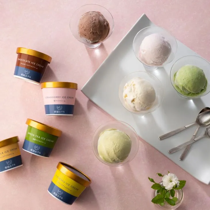 帝国ホテル伝統の味を一度に楽しめる、オンラインショップ限定のセット。メインのカレーは、丹念に炒めた香味野菜の甘みとトマト、チキンブイヨンの旨みが溶け合った伝統のソースが自慢です。柔らかく煮込んだ牛肉がたっぷり入った「ビーフカレー」と、プリプリのエビを堪能できる「シュリンプカレー」の2種を詰め合わせました。食後のデザートのチョコレートとピスタチオのアイス食べ比べもおすすめです。