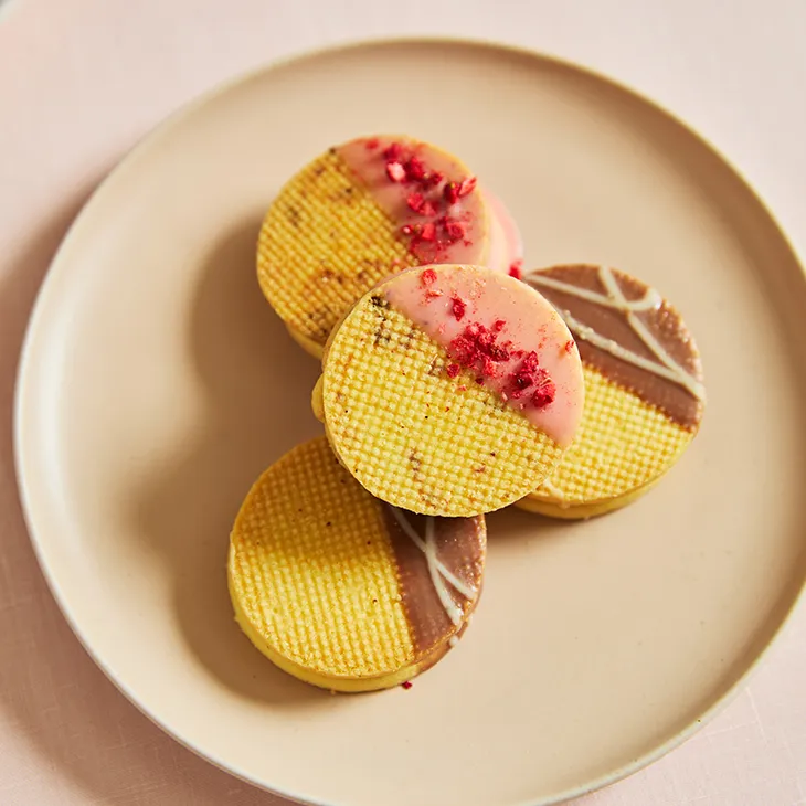 一口食べた時の香りと食感にこだわった、春のティータイムを彩るサブレ2種のセット。着色料を使わず、生地やクリームに甘酸っぱいいちごを練り込んだ「フレーズ」と、能登の海水から作られた塩にコク深いキャラメルを合わせた「塩キャラメル」のサブレの詰合せです。