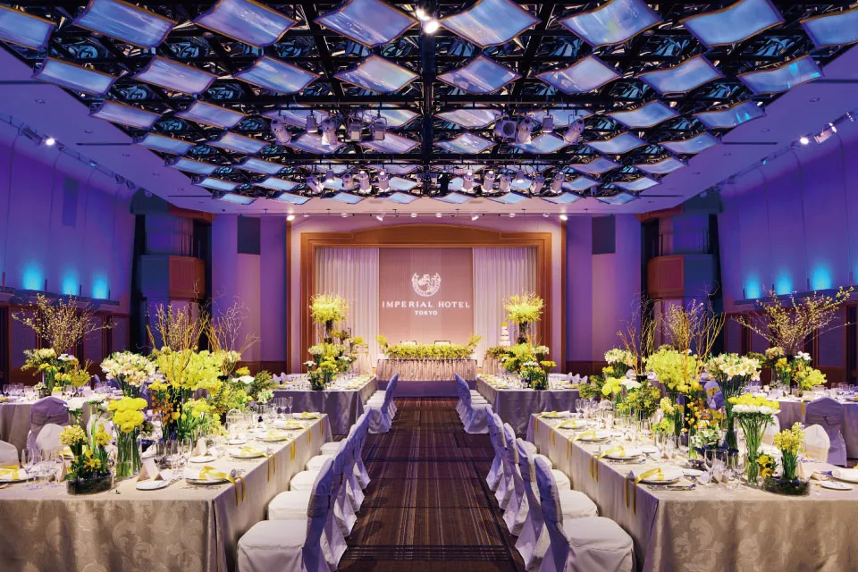 帝国ホテル2代目本館 通称「ライト館」より時代を超えて愛される意匠を受け継ぐ気品あるシグネチャーバンケットルーム。
