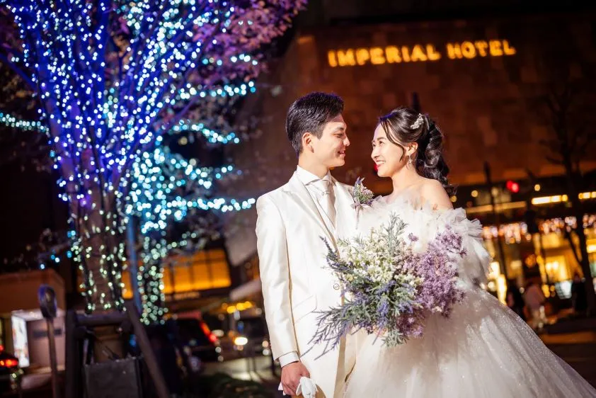 おふたりの思い出作りをより輝きに満ちたシーンとしてお手伝いができますよう、2025年12月~2026年2月限定で、日比谷仲通りのイルミネーションを背景に撮影いただけることになりました。
